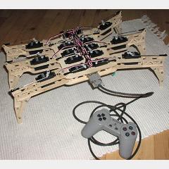 This robot further proves the awesome possibilities that hobby-servos offer. Controlled by a PS1 controller, the robot-crawler is powered by a microcontroller & completely mobile (even the head moves)!