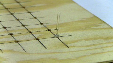 ·The method we'll use to solder the LEDs together is not too difficult. First you place a single LED into the template as seen here: