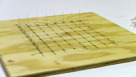 ·Here you can see what it looks like after all the strips are soldered to the L shape and the layer is ready to have some wire 'braces' connected.