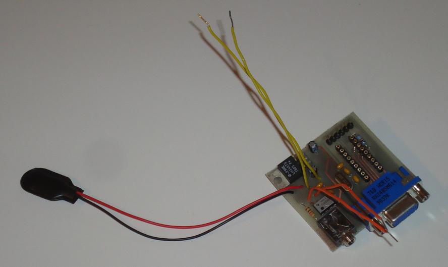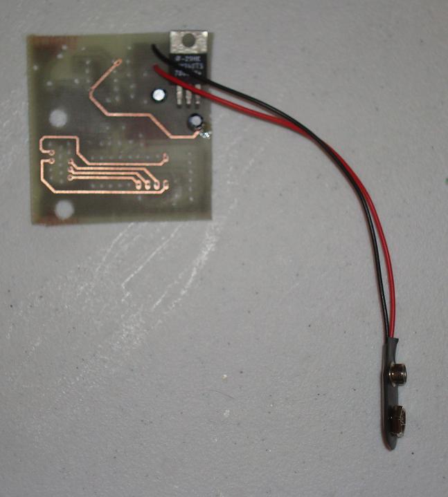 ·Finally, we can see the completed PCB board with all parts on it. The 6 pin header is the programming port for the PIC, so when you're ready and you have the software compiled, you can download it to the PIC.