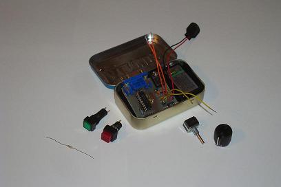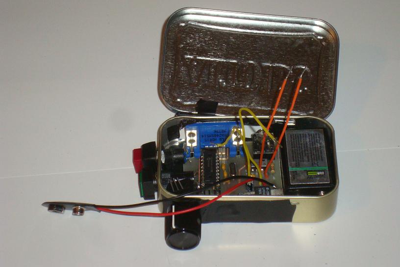 ·Drill a whole into the mint box for the trim-pot as well. Attach the knob once you've got things fit inside.