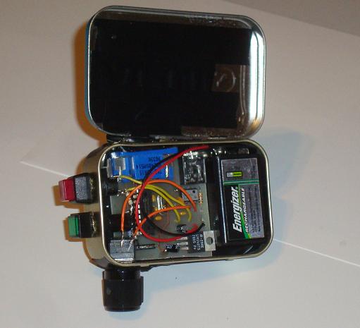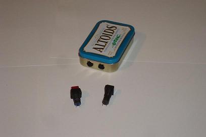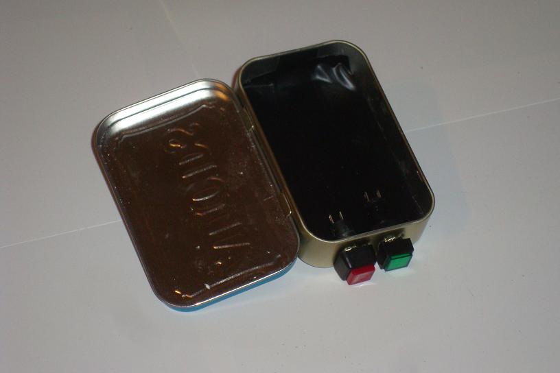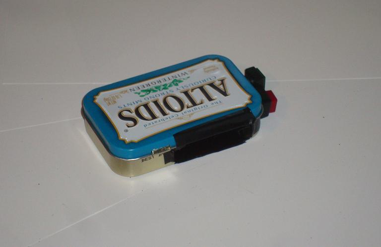 ·Here is a mock up of how the parts will fit into the mint box. First lets drill holes for the on/off button and LED.