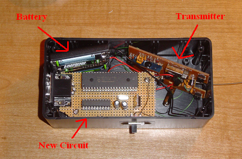 Now we'll build & wire together the new transmitter. This will be comprised of the battery, old transmitter & new circuitry.