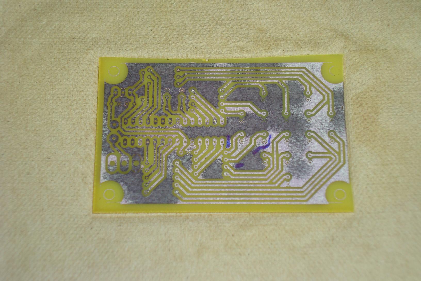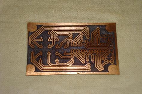 The top side also looks nicer after we scratch off the toner and leave only the copper on the board.