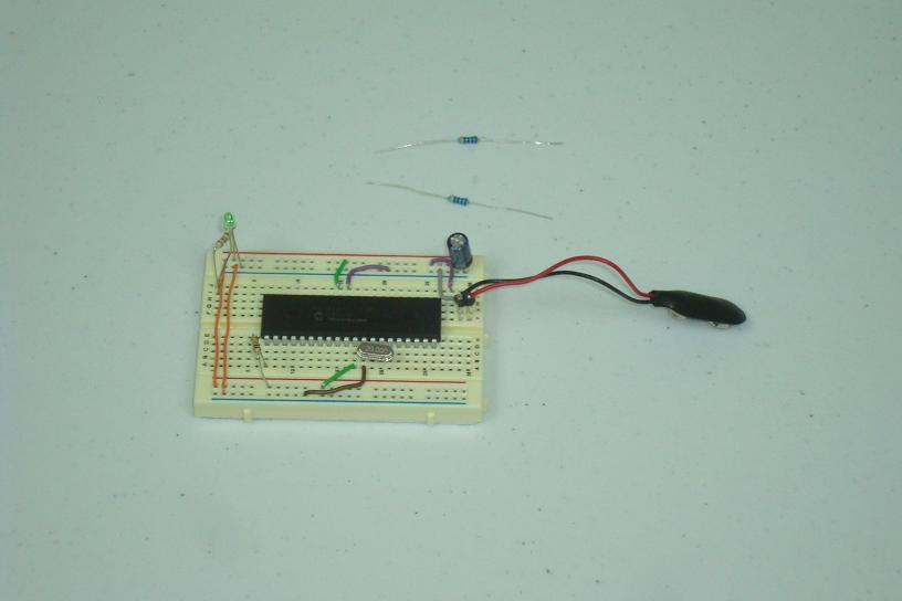 ·The parts above should show you how simple this process should be. First I connected the basic PIC parts to the power, ground and clock.