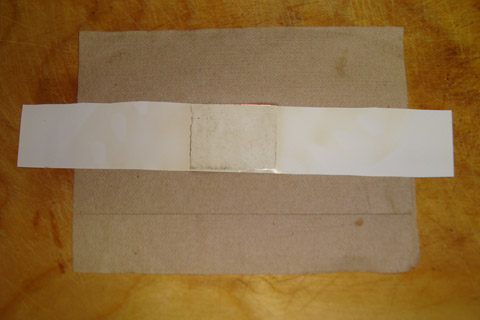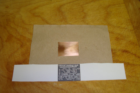 ·Using a standard clothing iron, I heated the glossy paper, transferring the black printer toner to the PCB.