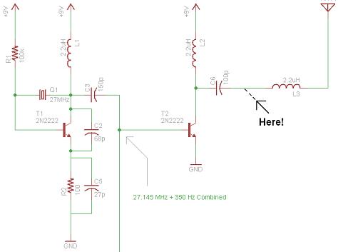 To make sure that the transmitter is outputting things as we expect, the prototype transmitter I built is connected up to a spectrum analyzer: