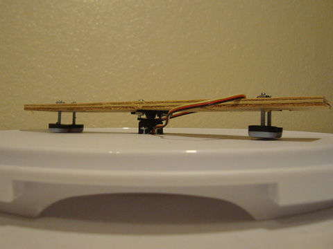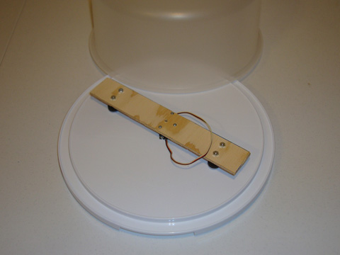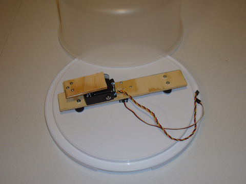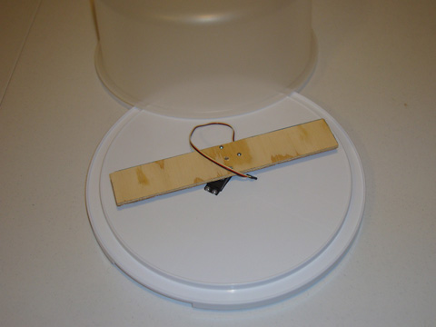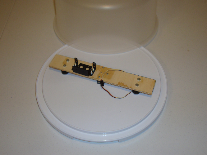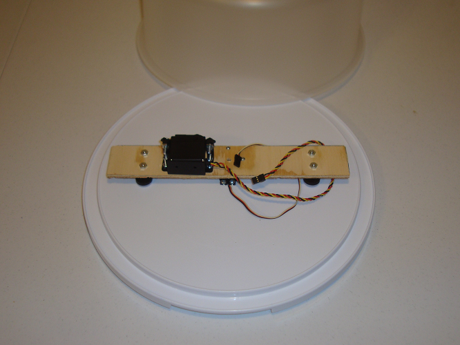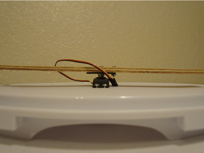 ·Cut a piece of wood roughly 27 cm by 5cm and mount it onto of the servo.