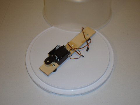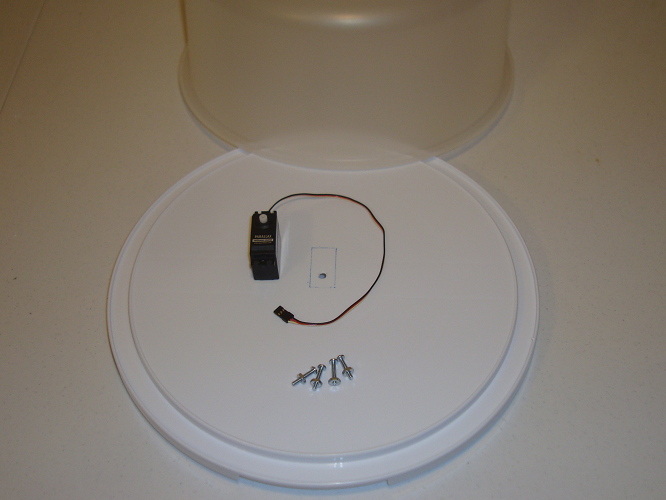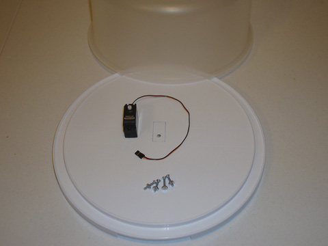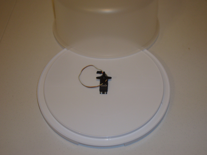 ·First cut a spot in the very middle for the continuous rotation servo and mount it.