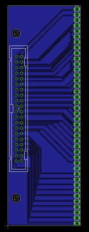 Feel free to download the Eagle project archive above and load up the schematic and layout on your computer. There's really nothing special to it. A nice breakout board, from dual row IDE to single row headers for a breadboard!
