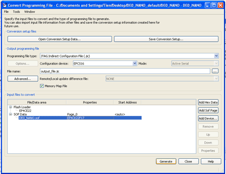 ·In Quartus II if you go to File->Convert Programming File you can make the .JIC file necessary for the Altera EEPROM.