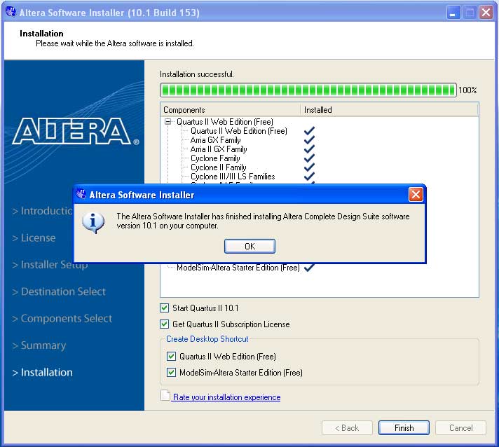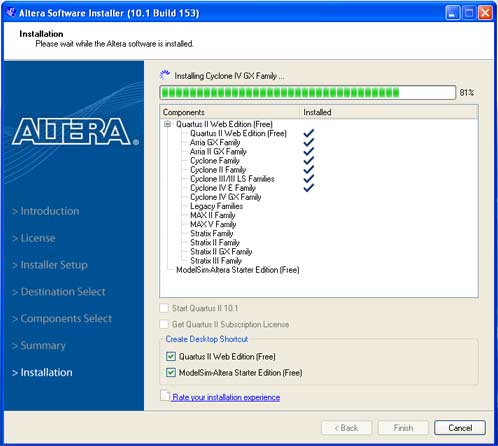 Altera has made installing quartus a very seemless task. The installer is almost fully automated and pretty much exactly like installing any other windows program (Xilinx you listening?).