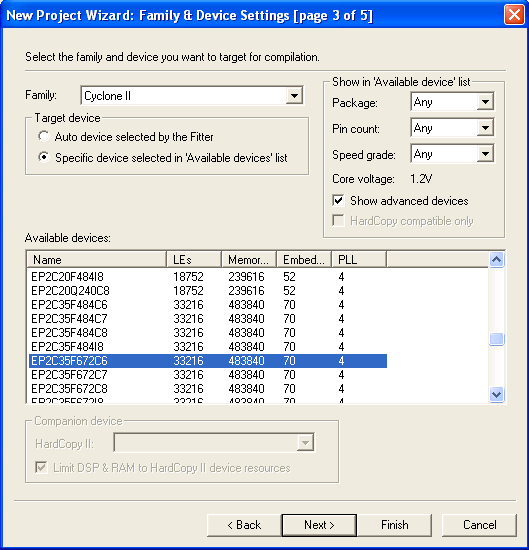 Select Family: Cyclone II, Device: EP2C35F672C6 »