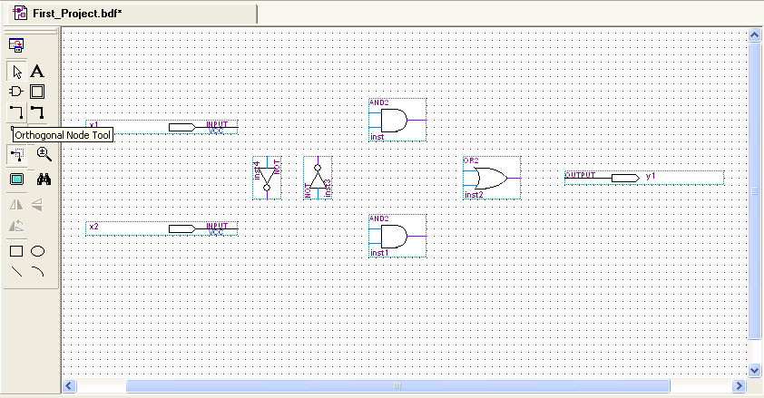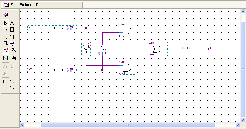 If you've ever seen a schematic of an IC what we're about to build will be familiar. Using basic logic gates we'll build a program to switch some LEDs off and on using switches on the DE2 board.
