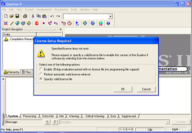 If you open Quartus II now, you'll get this window that popus up asking for a license: