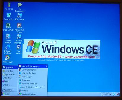 Since it is WinCE 5.0 there's a start bar & desktop with all the familiar things from normal windows versions.