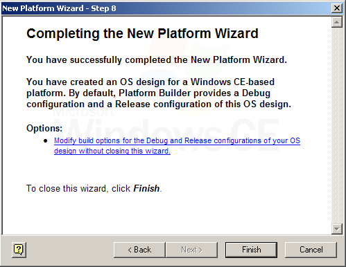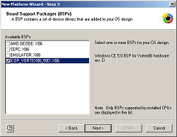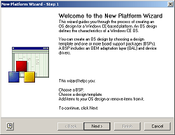 One really nice thing about platform builder and what I've found with microsoft products in general is that there is very little necessary work that one has to do to get everything setup and ready to do the real work. So now lets make a sample platform.