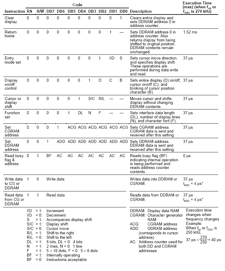 Most of these commands are rarely used, as you can imagine printing the characters is what happens most with the lcd.