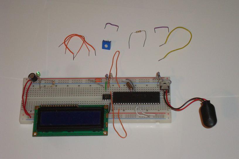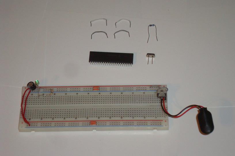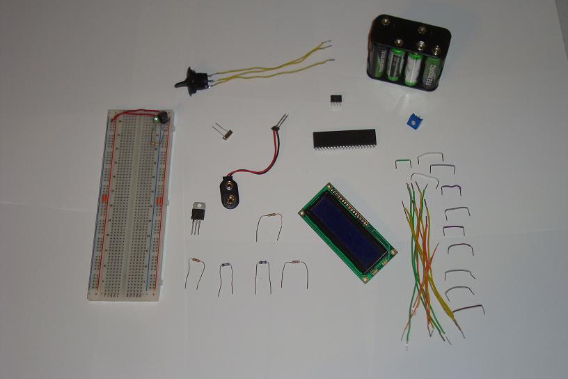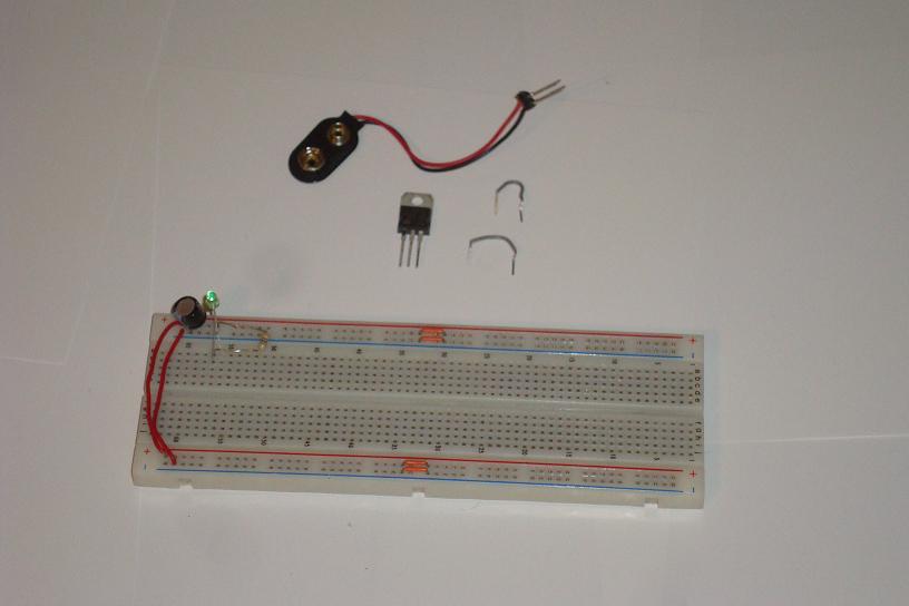 Gather all the parts needed to build the circuit. Since a breadboard is used, building the circuit should be rather painless and shouldn't take too long. The pictures below guide you through the process of hooking up the different portions of the circuit according to the schematic.