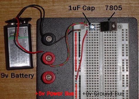 Here is an example of what a simple +5v power circuit might look like when you breadboard it: