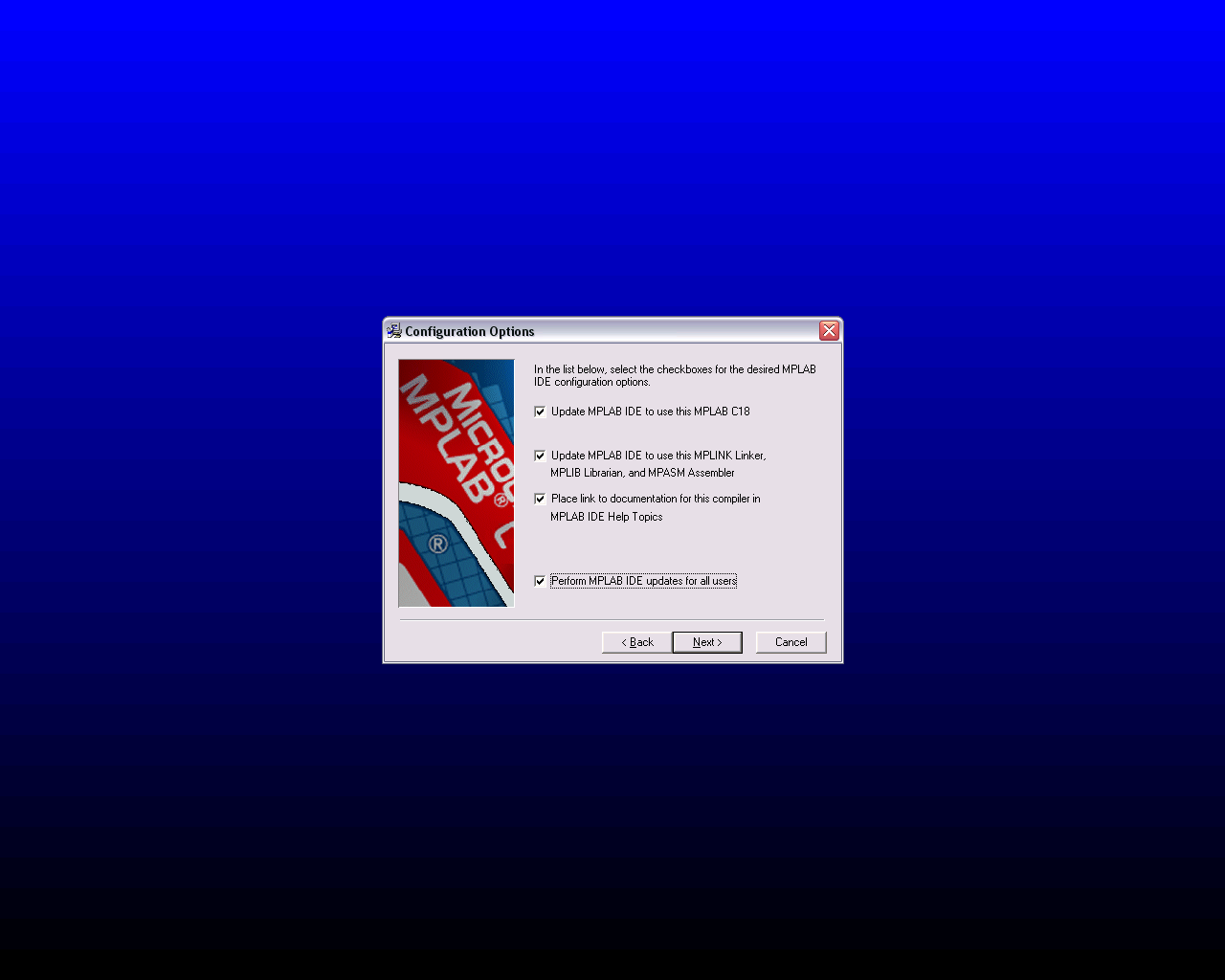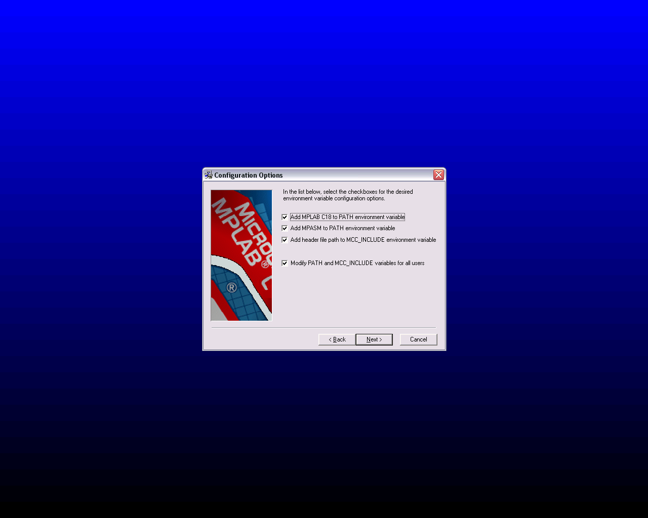 Those are the main options that need to be selected. They set enviornmental variables in the windows operating system. This makes it easier for the compiler to locate where certain files are on the computer. If we didn't check these options, we would have to select them everytime we want to compile within MPLAB (it gets very cumbersome).