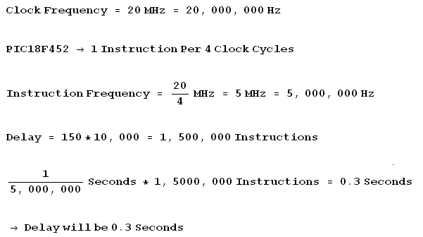 -Delay10KTCYx(150) delays the PIC 10K Instruction Cycles * 150 = 1,500,000