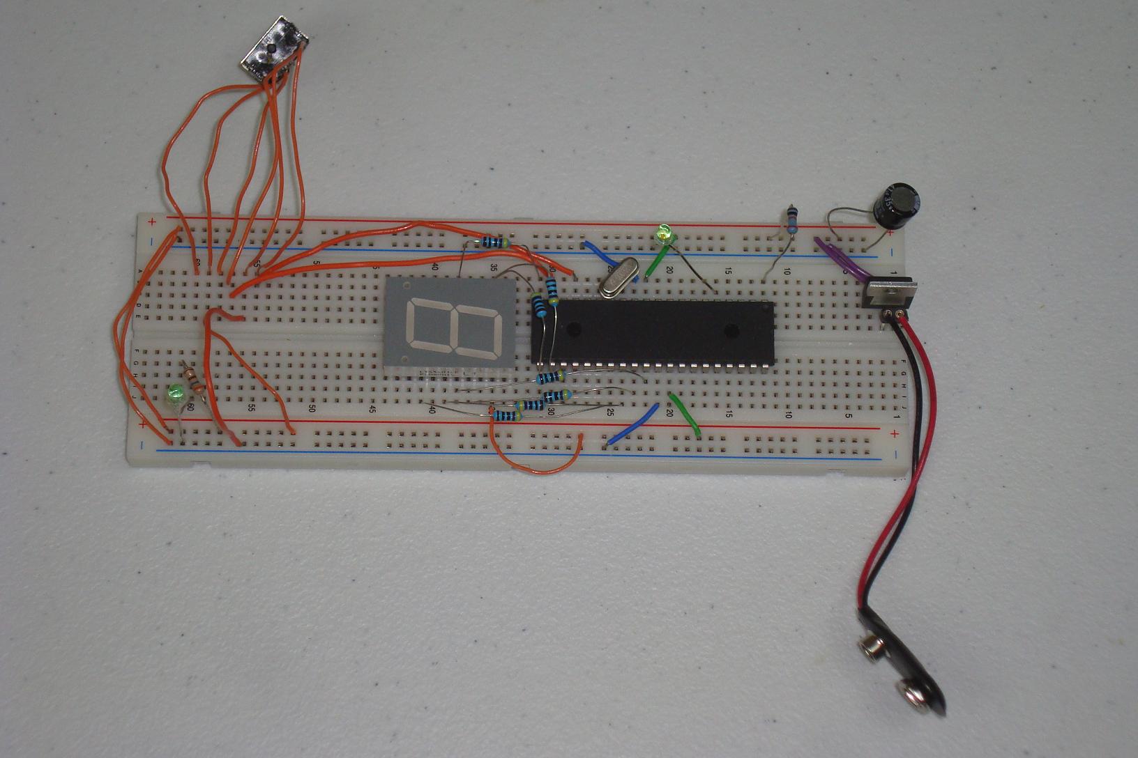 ·Presto, Finished! Just follow the schematic if you're in doubt. Look out! Your 7-Segment display might be wired differently than mine. Look up the datasheet and see which wires turn on which segment so you know what is going on!