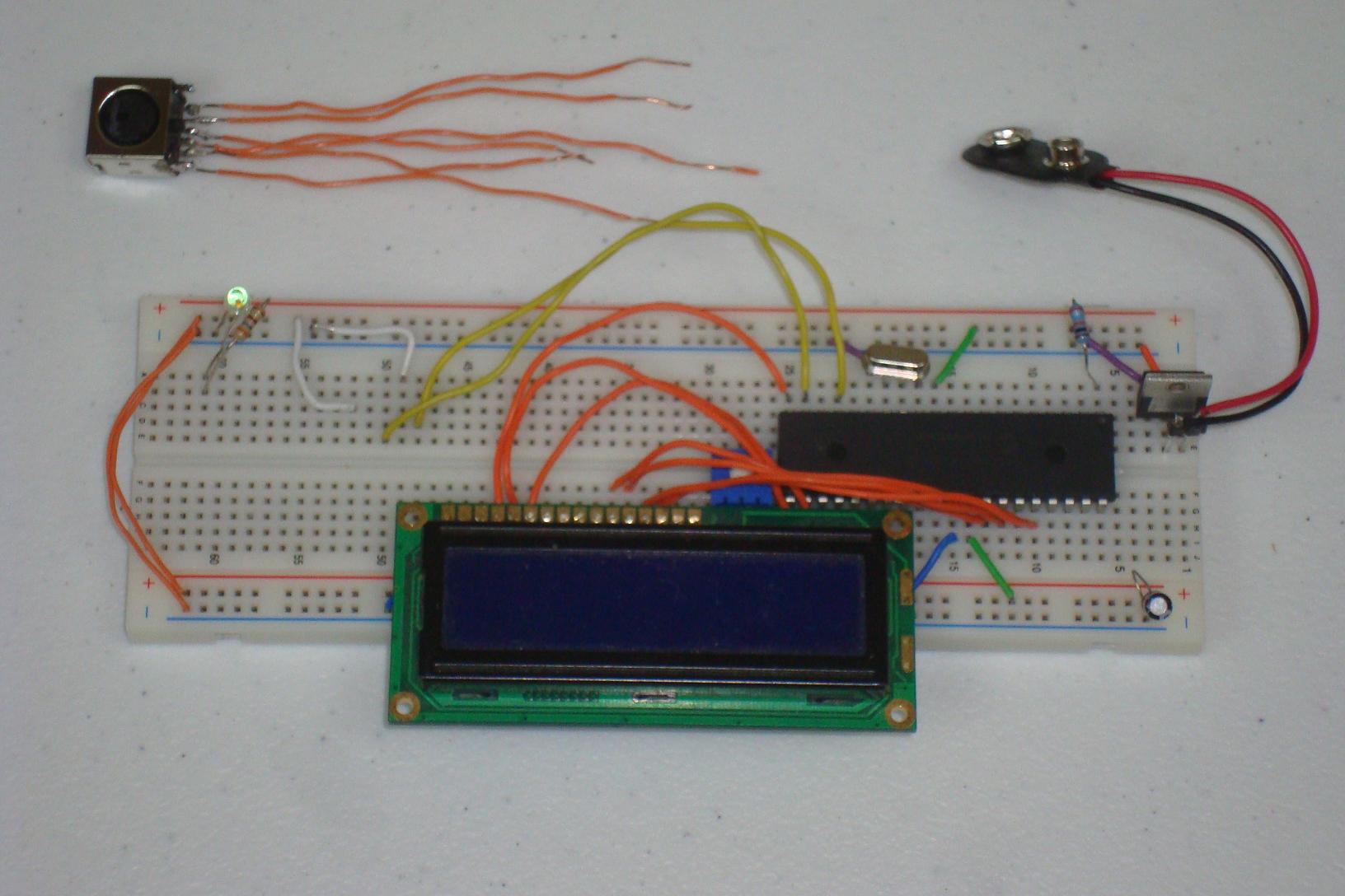 ·The PS/2 female connector is connected to the breadboard with some lead wires I soldered to it.