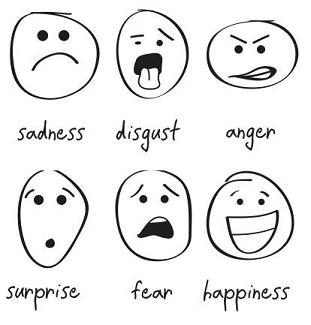Now, let's take a look at what we can do with these eyebrows once we're done with them. Many charts already exist on the internet that give great examples of how our faces yield a variety of emotions through the look of your mouths, eyes, cheeks, eyebrows and all parts of our face. Below you can see a simple chart that displays 6 key emotions in human beings.