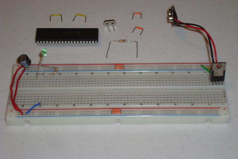 ·Next wire up the PIC with power, ground and 16 MHz crystal.