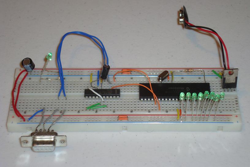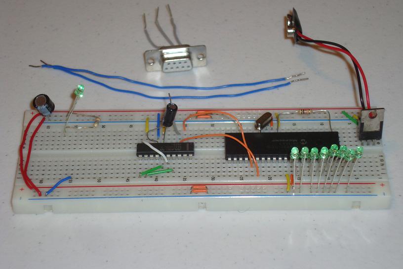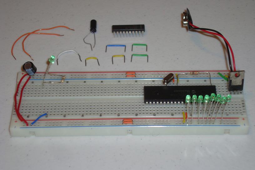 ·Add The 8 LEDs connected to PORTB. Current limiting resistors optional (I didn't put any).