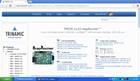 The stepRocker is more than just a direct motor controller board, it's programmable. On the TMCM-1110's main information page at Trinamic's website they have a ton of good information that explains about how to get started with the stepper motor controller and beyond. The part we want to focus on here is the TMCL firmware language that we can use to programmatically tell the TMCM-1110 what to do.