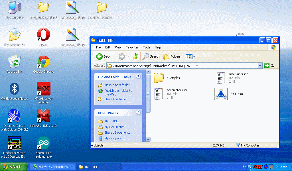 The TMCM-IDE (IDE = Integrated Developement Enviornment) is downloaded either through an executable or in a zip file. I got the zip file and unzipped it right onto my desktop. Inside the zip you get the main TMCM-IDE enviornment and a folder full of examples.