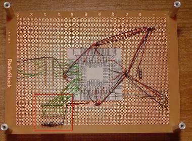 The wires are connected from the resistor array to the CPLD I/O pins. In this tutorial, PINS 53-61 are used, feel free to use any open pins you like, these were just clostest and most convenient.