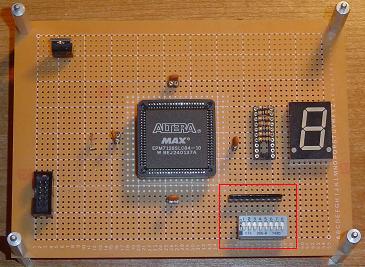 Before going into how VHDL works, I want to make sure you already have the DIP Switch installed on the Dev Board. If you followed the Verilog tutorial and have done this already, skip this section. Otherwise: we'll install the additional hardware onto the CPLD Development Board. This shouldn't take very long, it's a matter of connecting a few devices with wirewrap and getting the new additions situated on the board.